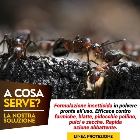 Formulazione insetticida microgranulare pronto all’uso adatto per il trattamento di superfici porose. Il prodotto è efficace contro insetti striscianti come formiche, blatte, pidocchio pollino, pulci e zecche. I principi attivi conferiscono al prodotto una rapida azione abbattente. Può essere usato specificamente nelle attività agricole e in tutte le zone rurali.