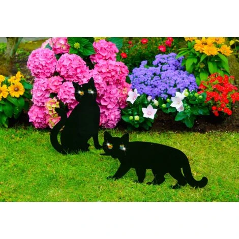 Il pratico set da 2 comprende un gatto seduto e uno rannicchiato. In questo modo, i gatti spaventapasseri possono proteggere diverse aiuole o un’area più ampia del giardino allo stesso tempo.