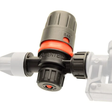 Regolatore di pressione per lance in ottone che permette di erogare una quantità costante di liquido e prodotto, mirata al trattamento da effettuare.